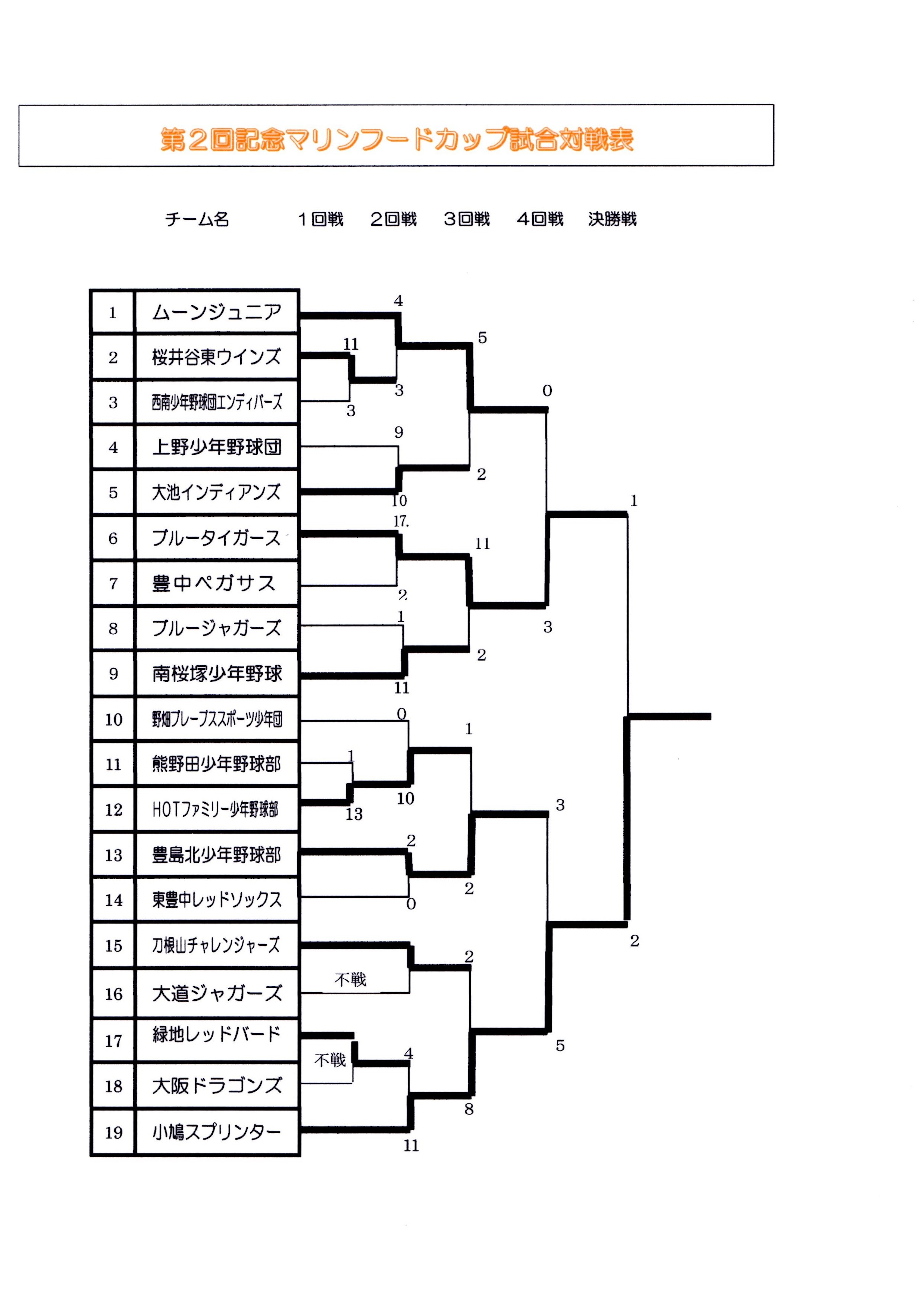 学童2部 優 勝:豊中ペガサス 準優勝:緑地レッドバード 第3位:小鳩スプリンター ドリーム賞:HOTファミリー少年野球部