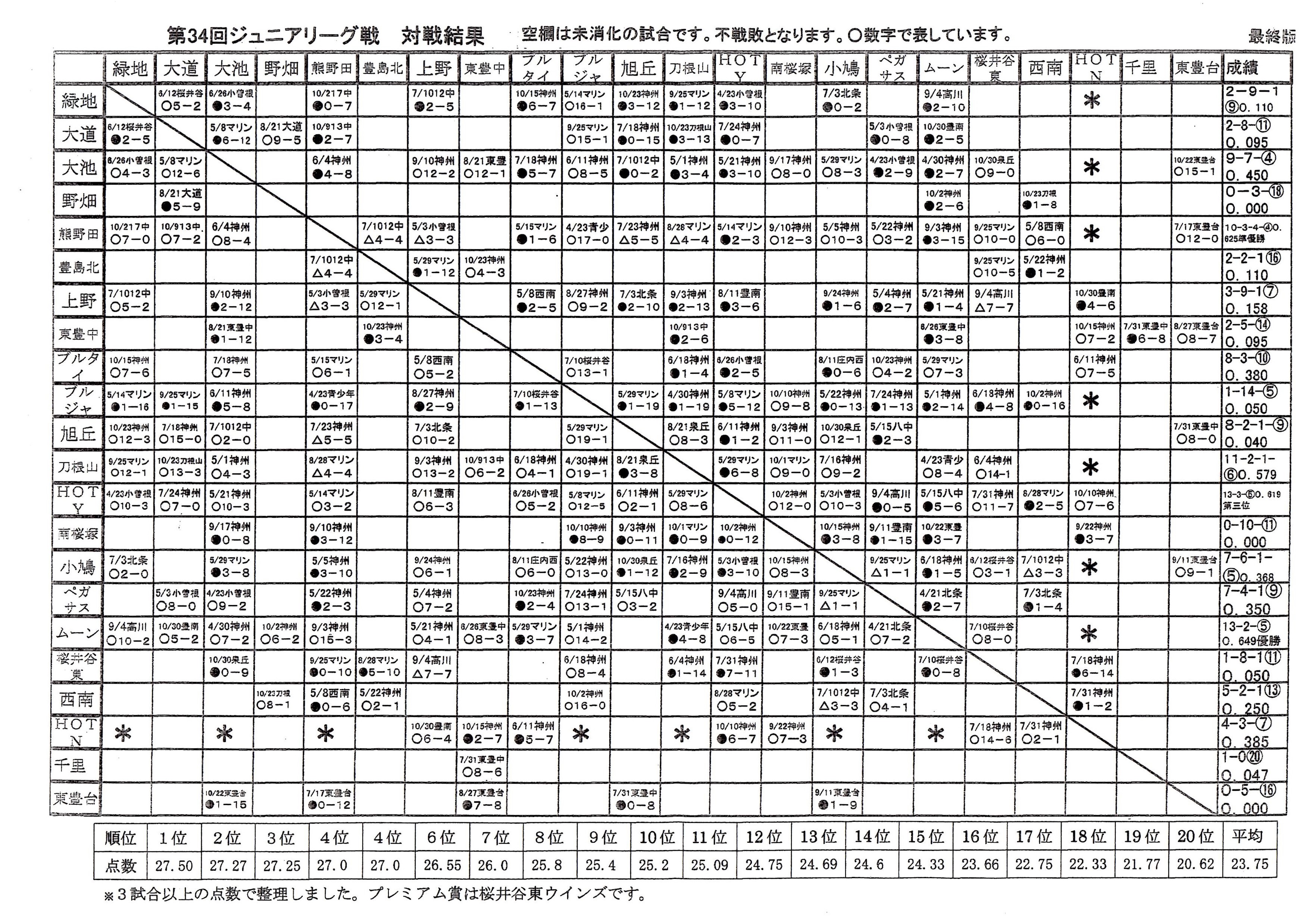 2016年4月スタートした第35回ジュニアリーグ戦は参加21チームの4年生主体で熱戦を繰り広げ、10月末で終了し、本格的に実力を競うトーナメントに移行し、ご案内で記載したような結果でした。もともと、楽しく野球の試合を通じてその醍醐味を実感し、併せてチームワークの大切さやルールを学ぶ機会として開催した大会ですが、年々選手の成長が早い実感を主催者が感じるリーグ戦になっています。